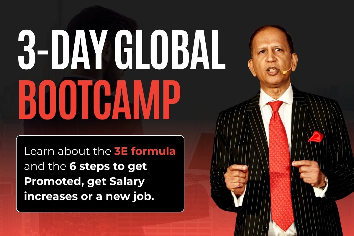 Register now for a 3-day LIVE bootcamp that gives mid-career professionals the 3E formula and the 6 steps to get Promoted, get Salary increases or a new job